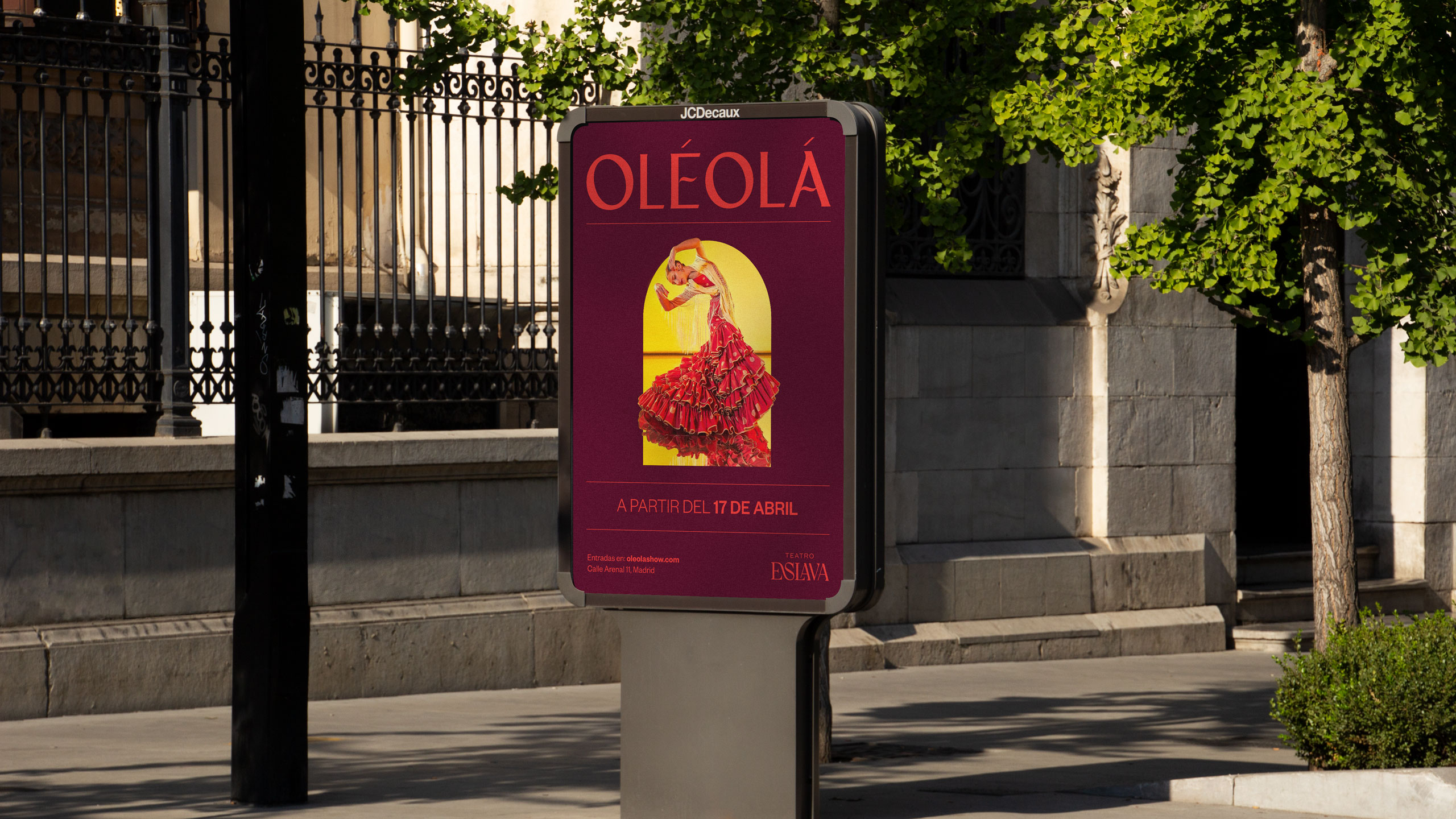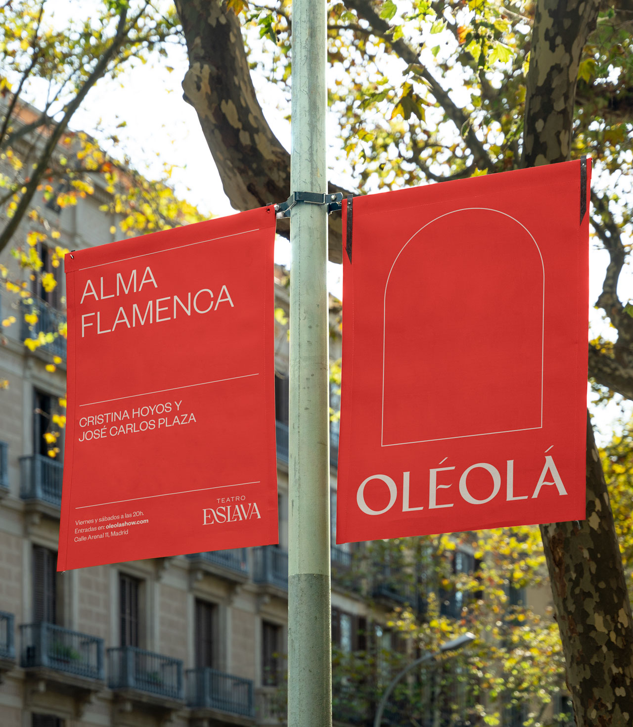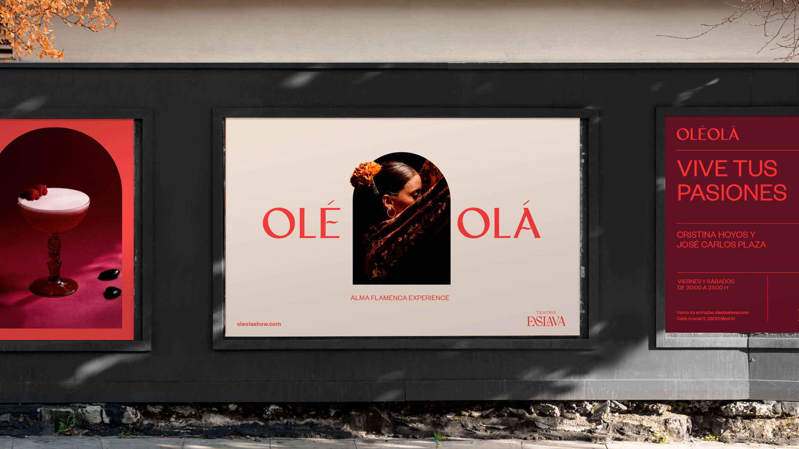 OléOlá es un espectáculo flamenco que rinde homenaje a esa manera de celebrar y entender la vida que tanto nos caracteriza destacando lo mejor de nuestra esencia. Todo lo que nos define está presente en diferentes rincones de nuestra cotidianidad, desde nuestra lengua a nuestras fiestas, pasando por nuestras ropas, nuestros platos o nuestra arquitectura; y son precisamente todos esos detalles los que inspiran el diseño y dan forma a la identidad visual.
